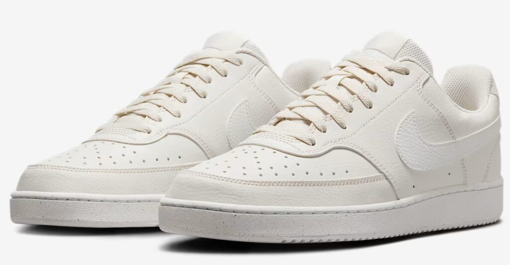 This is that “goes with anything” sneaker. All white, clean, and endlessly wearable. The retro swoosh and pebbled upper bring heritage charm, and the fact that it’s made using recycled materials is a bonus. Wear it with jeans, shorts, or even formal trousers yes, they handle it like a pro.