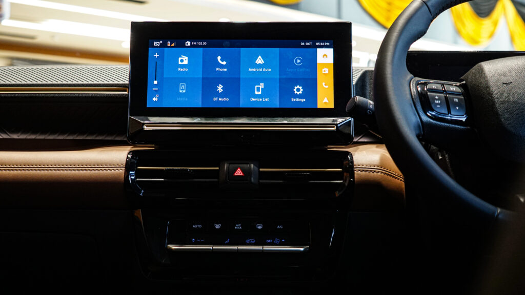 A bezel-less 10.25-inch touchscreen infotainment system takes center stage, flanked by a 7-inch digital driver display. The interface feels fluid and intuitive, tying in beautifully with the car’s star feature — CARA, India’s first multilingual in-car assistant.