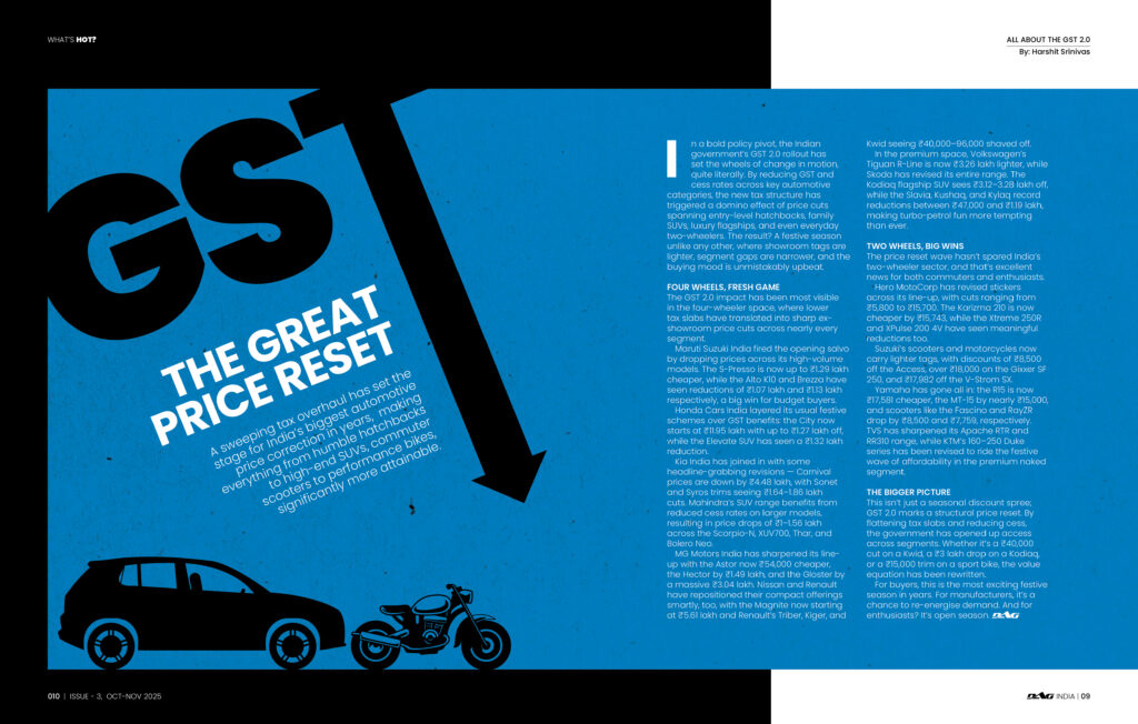 In All About GST 2.0, we break down how India’s evolving GST structure affects two- and four-wheelers, from small-capacity commuters to performance SUVs. It’s your go-to roadmap for making smarter, post-budget buying decisions.