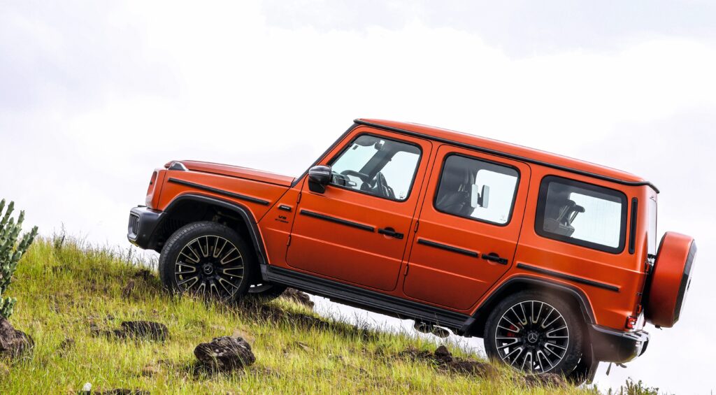 Under the bonnet beats a 4.0-litre twin turbo V8 paired with a 48V mild hybrid system adding 20BHP of electric assistance. With 585 bhp and 850 Nm of torque, the G 63 is gloriously excessive.