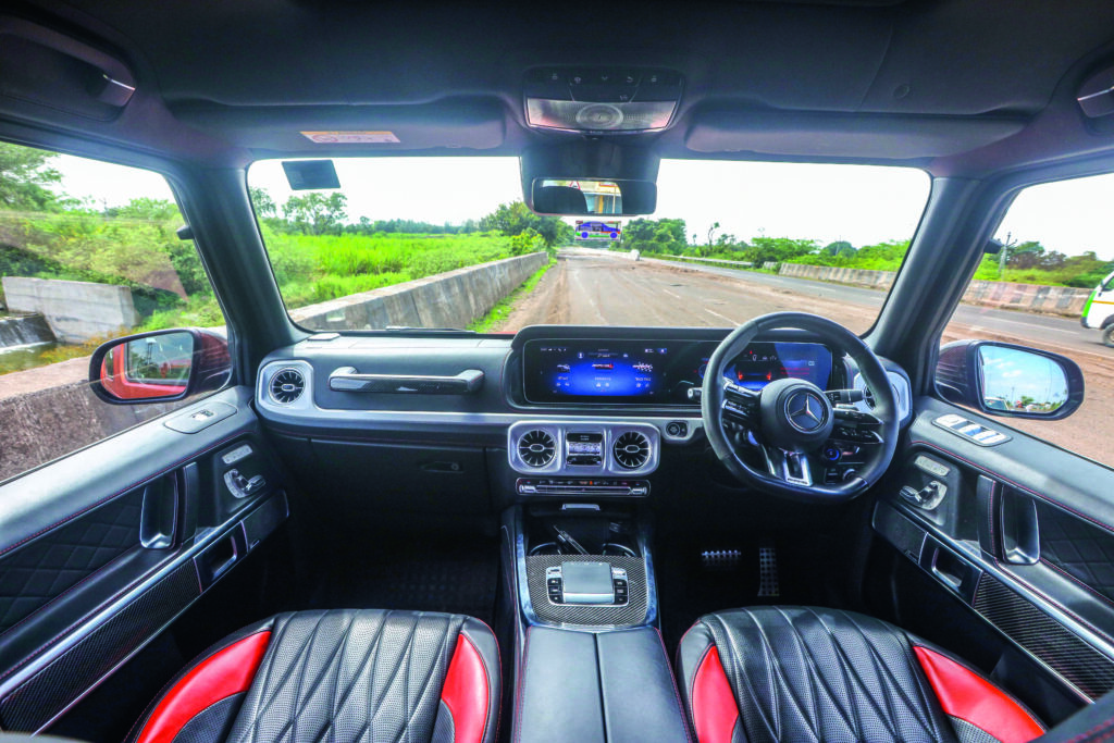 Climbing inside a G Class is still a ceremonial affair. The doors open with that signature thud, the sound of a safe locking shut. The cabin sits high, you don’t sit in the car; you sit above it. The view is commanding, almost panoramic, and the sense of occasion is undeniable.