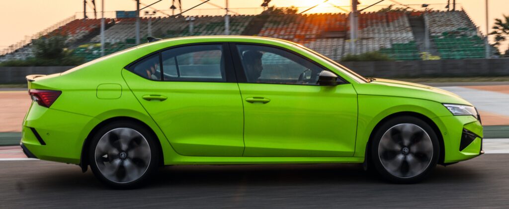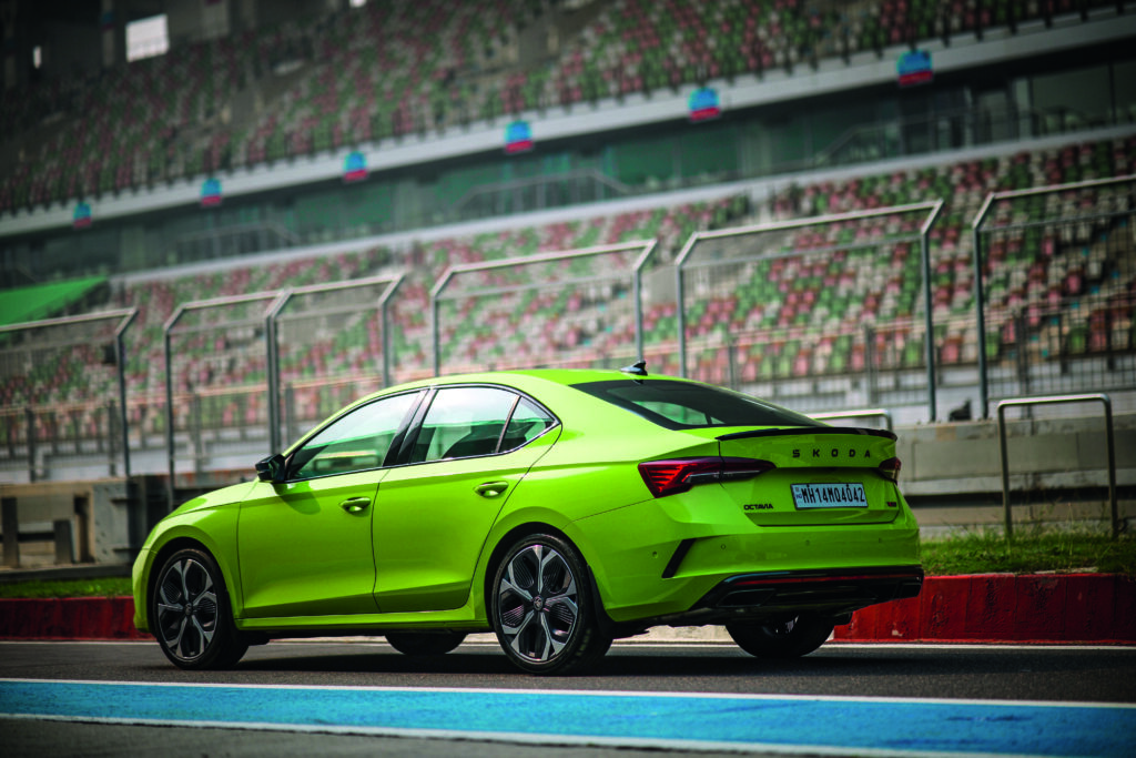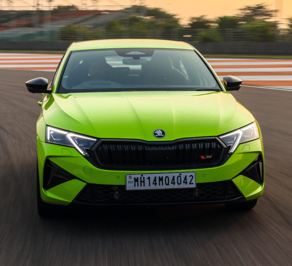 That’s the kind of anticipation that was hanging in the air as I stood in the pit lane of the Buddh International Circuit. And there it was: my ride for the next few laps, a brand new Octavia RS shimmering in that impossible, electric ‘Mamba Green’. The plan was simple. Three hot laps, one cool-down lap, and a handling test to top it all off.
