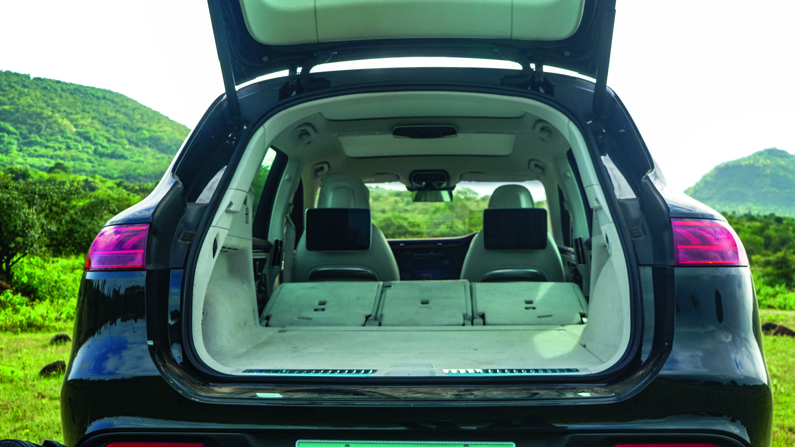 The 5-seater configuration transforms the rear cabin into a true lounge. Drawing on the 7-seater EQS SUV’s experience, the second row becomes a command centre with twin seatback screens, ambient lighting controls, and a tablet tucked into the armrest. It’s a first-class environment, complete with pillow-soft headrests and beautifully finished trims that make even short drives feel special. Then comes the boot, a genuine revelation.
