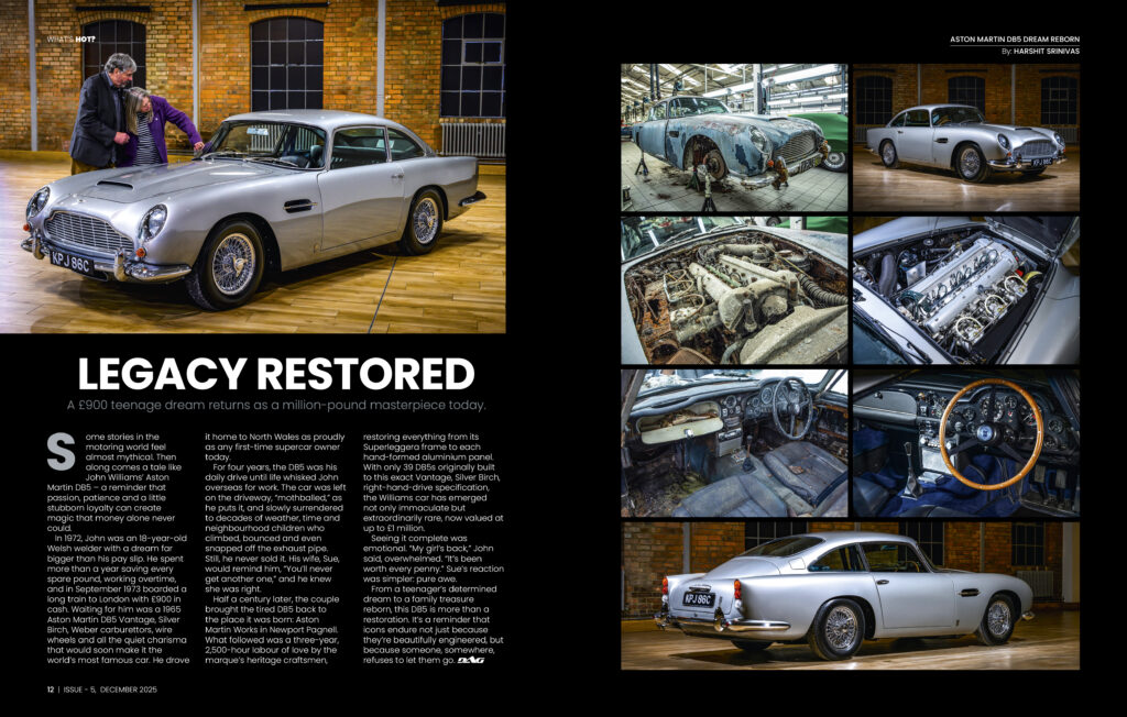 A rare glimpse into the full-scale restoration of the iconic Aston Martin DB5. This feature narrates the emotional weight, engineering precision and artisanal craftsmanship behind bringing a family’s dream back to life.