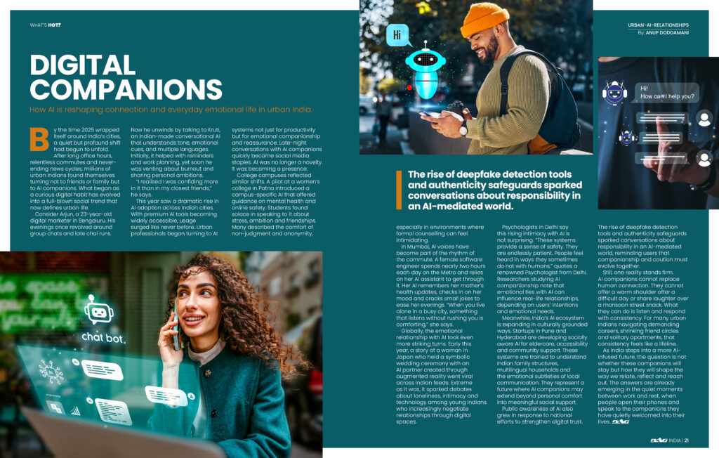 Digital companionship took a bold leap forward this year. This feature investigates India’s growing trend of AI-driven relationships, with real-life anecdotes and insights into how technology is reshaping connection, intimacy and emotional comfort.