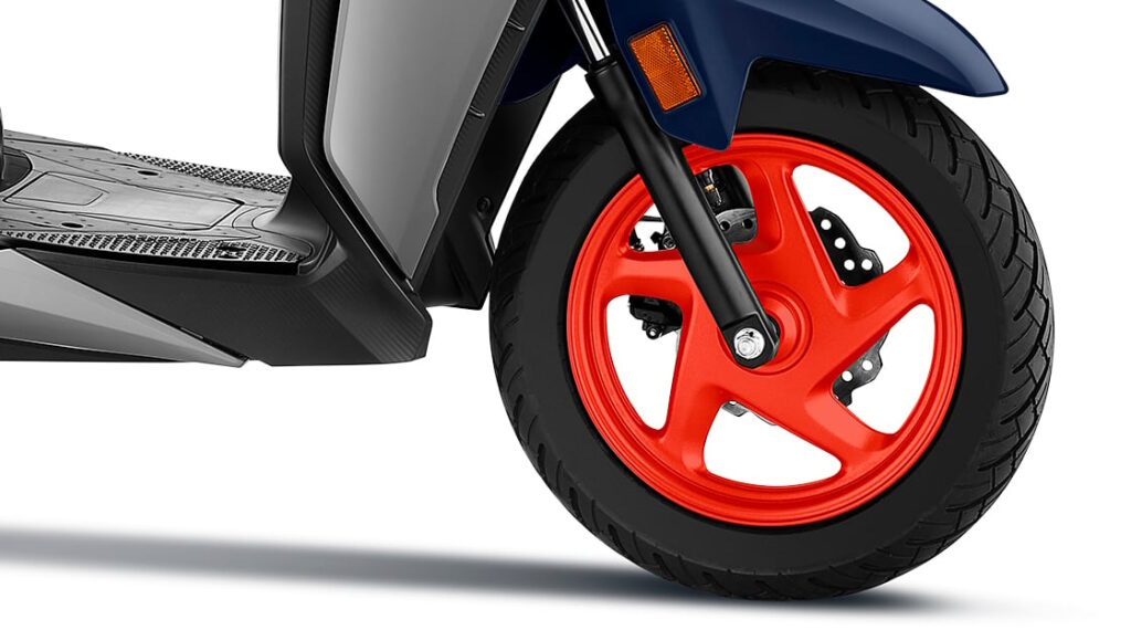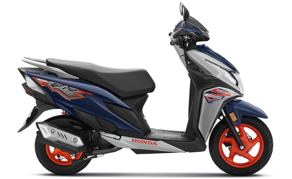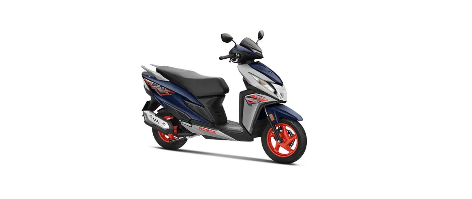 The Honda Dio 125 X-Edition stands out with its bold blue and grey dual tone paint scheme. The contrasting red alloy wheels add a sporty character and make the scooter look premium on the road.