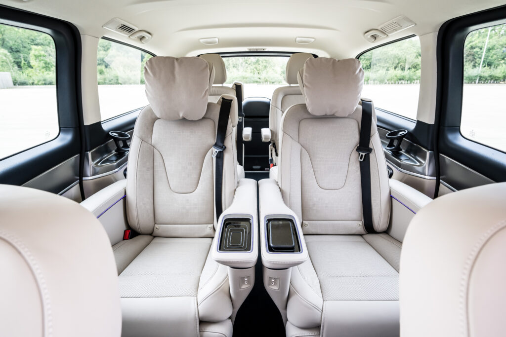 The V-Class offers multiple seating layouts, including 6, 7, and 8-seater configurations. With ample legroom, wide windows, and high roof clearance, the cabin feels open and airy. This flexibility makes it suitable for business travel, family road trips, and luxury shuttle services.