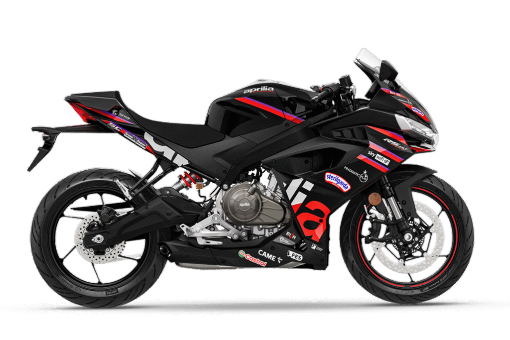 The highlight of the GP Replica edition is its stunning black paint scheme. Finished in a mix of gloss and matte black, the motorcycle carries official sponsor decals similar to Aprilia’s RS-GP race bike.