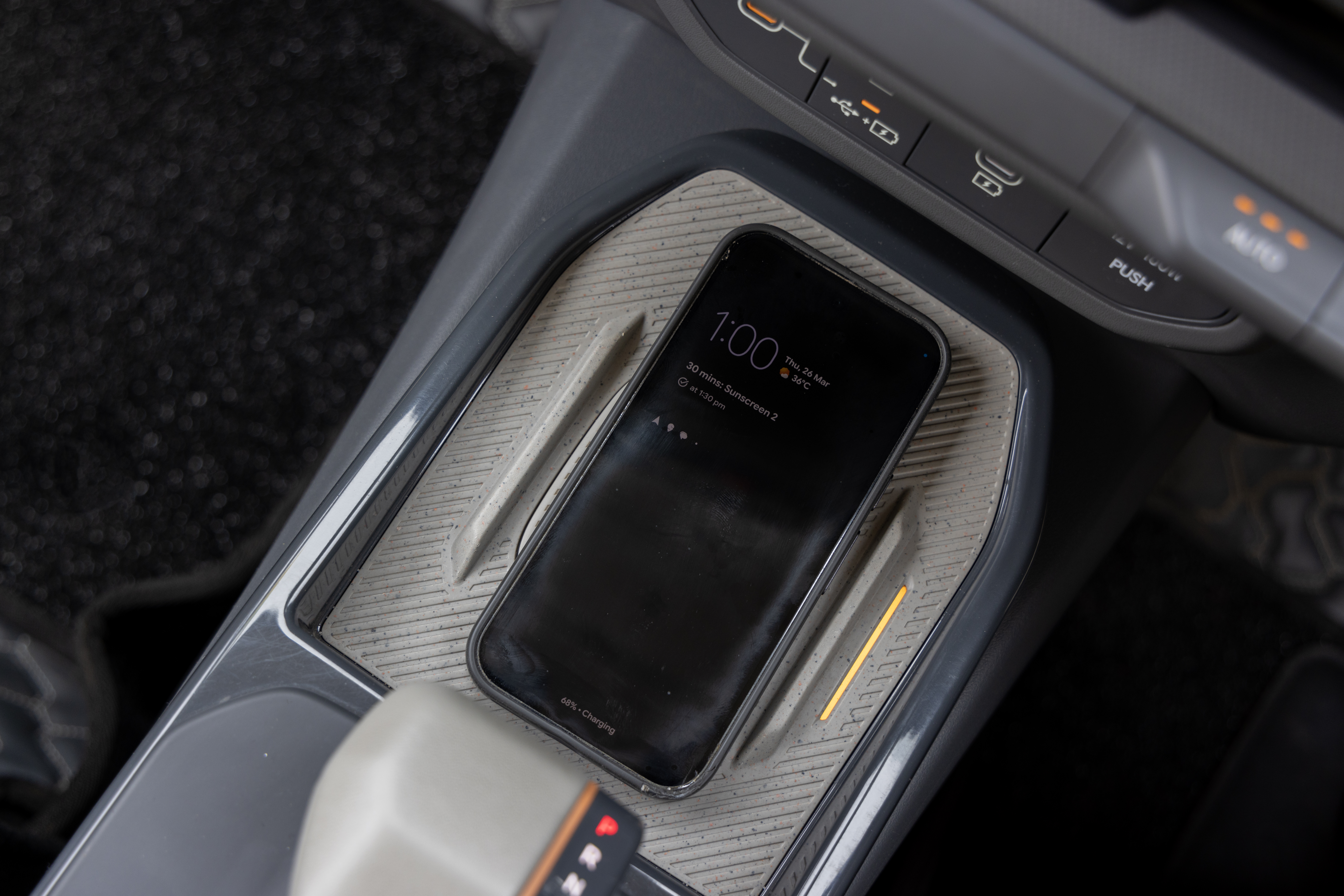 Storage spaces have been intelligently designed. The wireless charging pad is large and usable, the cupholders accommodate different sizes, and the door pockets can hold multiple bottles. Real-world usability was prioritised.