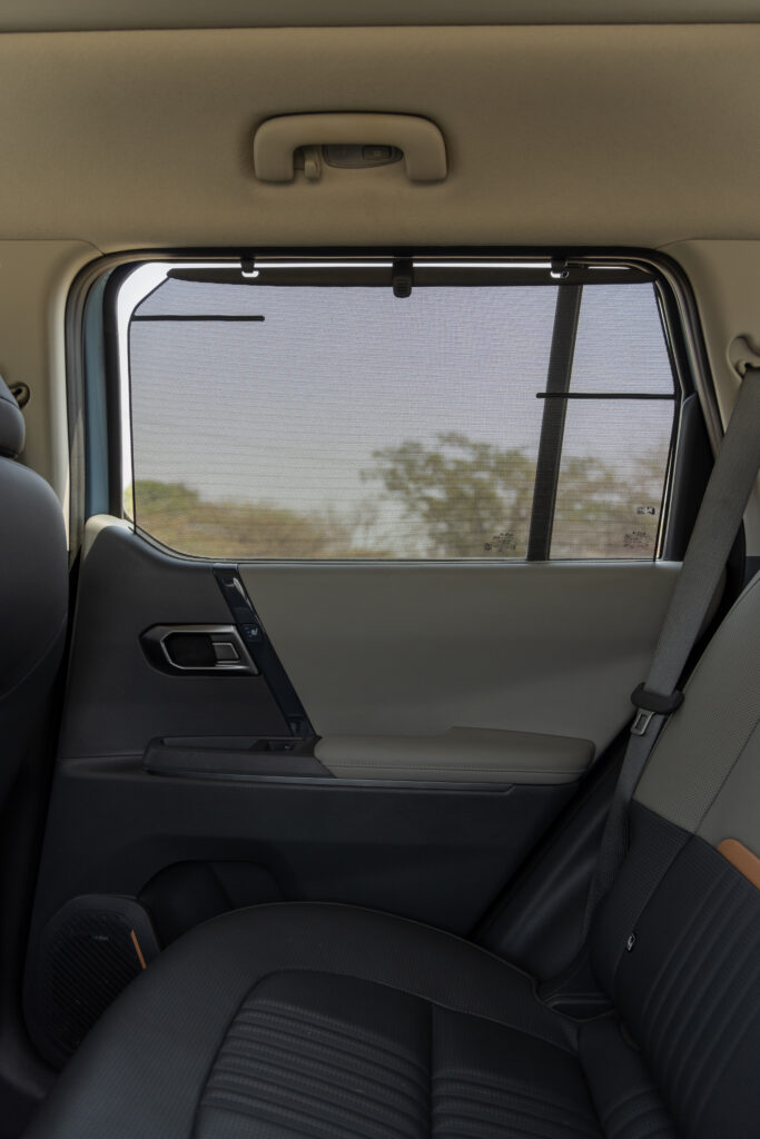 Move to the side, and the design language continues with equal conviction. The cladding runs uninterrupted from the front bumper, across the doors, and into the rear fenders. The wheel arches are chunky, the stance remains upright, and the window line curves upwards towards the rear, giving it a distinctive profile.